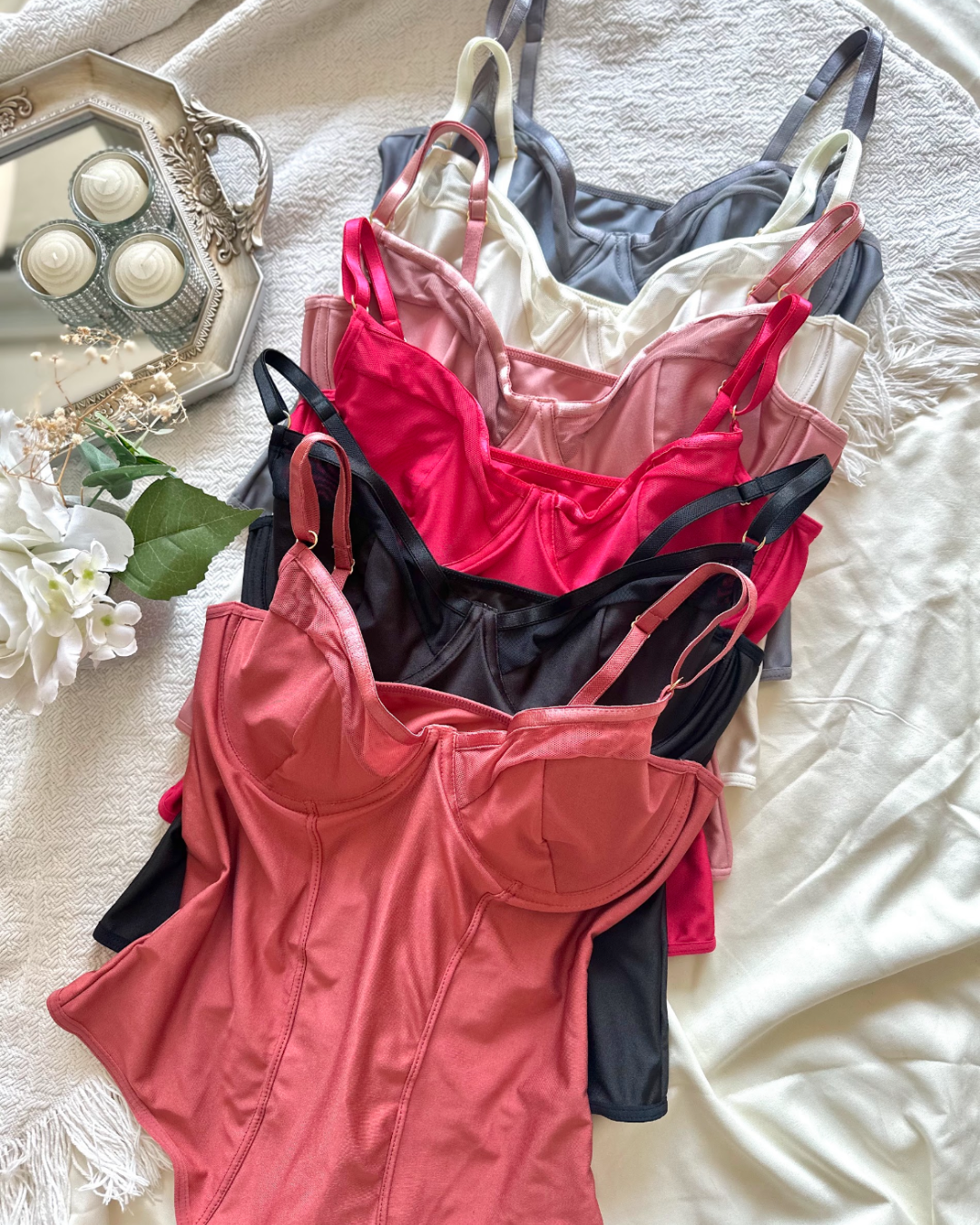 El Body Matilda es la prenda ideal para un look atrevido y elegante al mismo tiempo. Su diseño satinado en gris con copas estructuradas y aros realza la figura, mientras que el corte ajustado estiliza cada curva con un acabado moderno y sensual. Perfecto para una noche especial o para elevar tu colección de lencería con un toque de distinción.