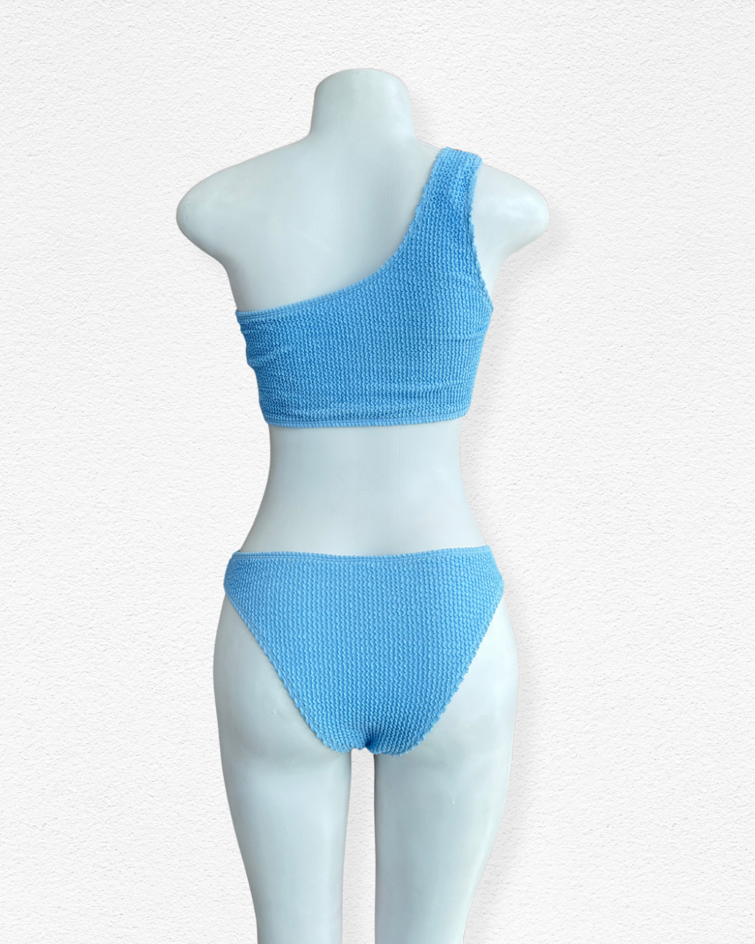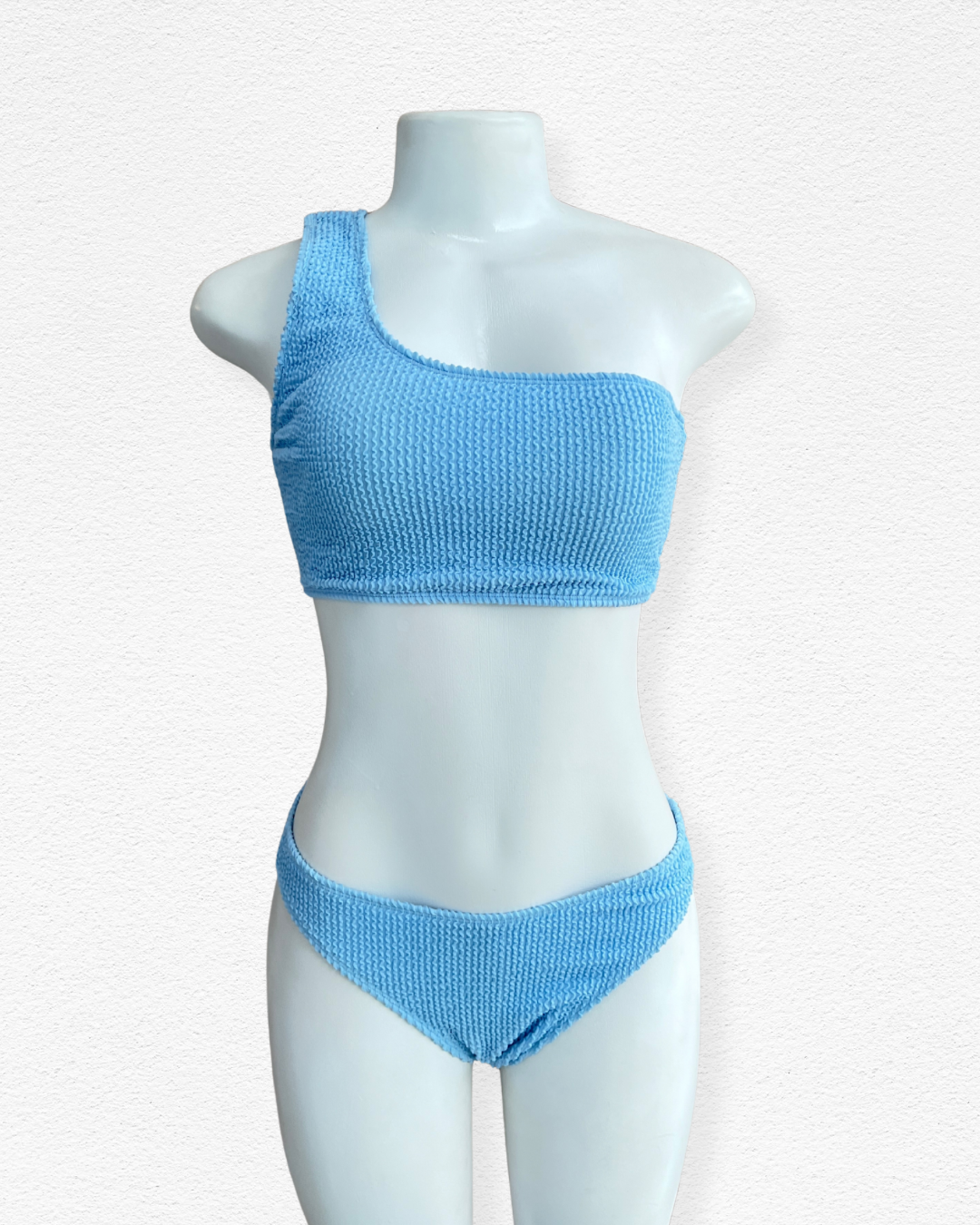 El Hawaii Bikini es frescura pura con un toque moderno y adorable. Su textura tipo waffle y su diseño asimétrico crean un look único, juvenil y súper favorecedor. El tono celeste aporta esa vibra tropical y relajada, como un día perfecto en las playas de Hawaii: cielo despejado, agua cristalina y energía veraniega sin esfuerzo. 🌊☀️🩵✨