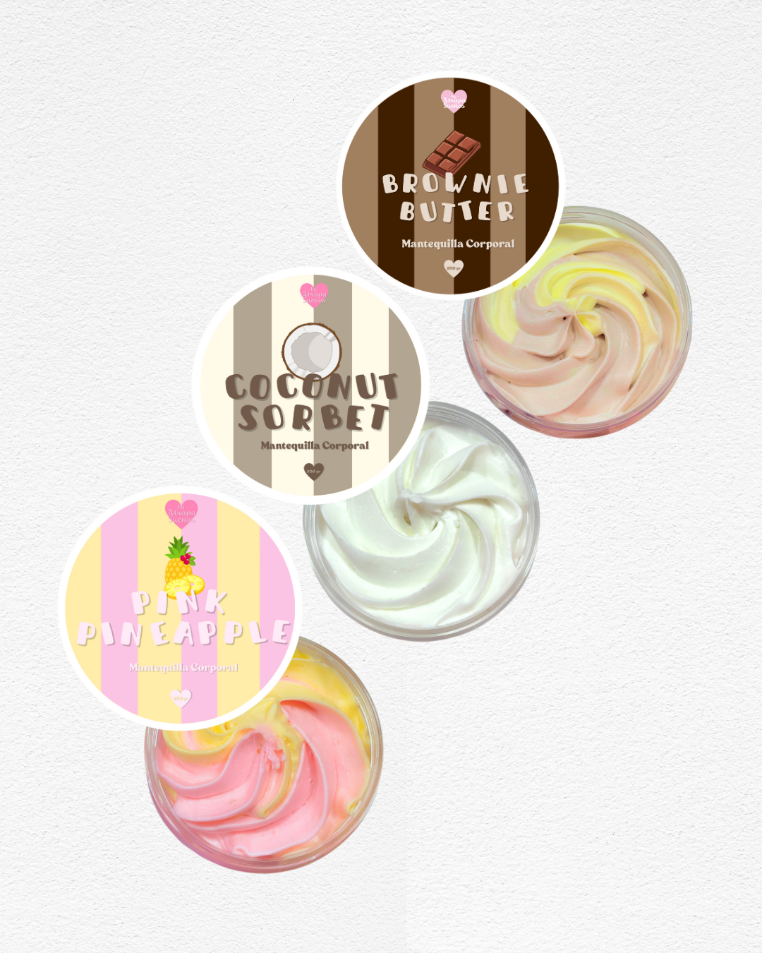 ¡Un delicioso cuidado para tu piel! 🍬✨ Inspiradas en postres, helados y dulces irresistibles, nuestras mantequillas corporales te envuelven en una experiencia sensorial mágica mientras nutren intensamente tu piel.