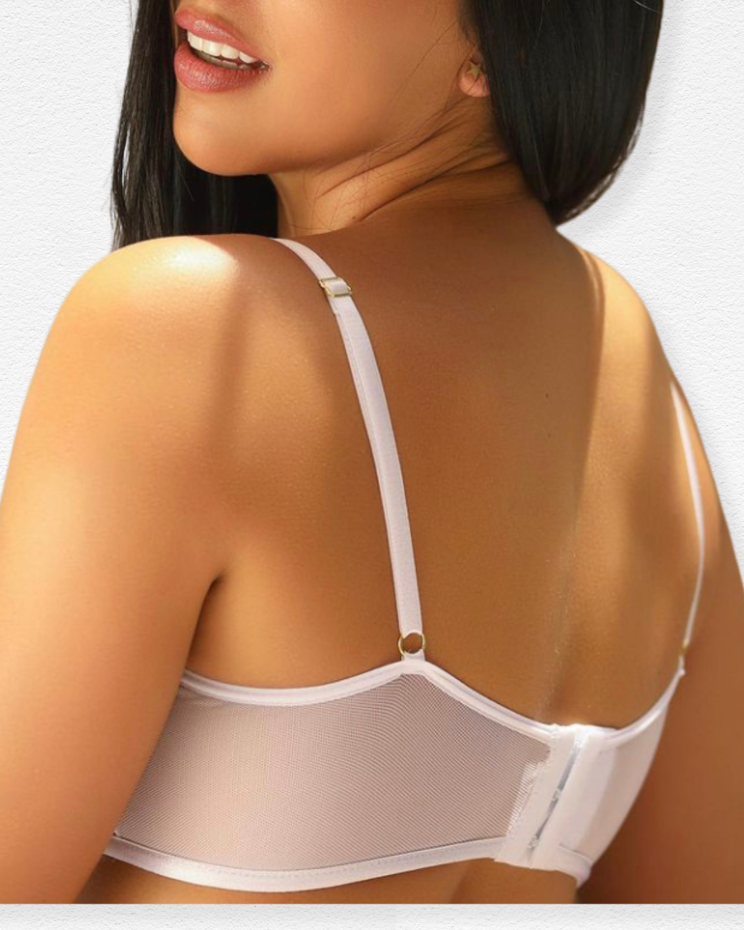 ✔️ Bra con copa de encaje geométrico y transparencias elegantes